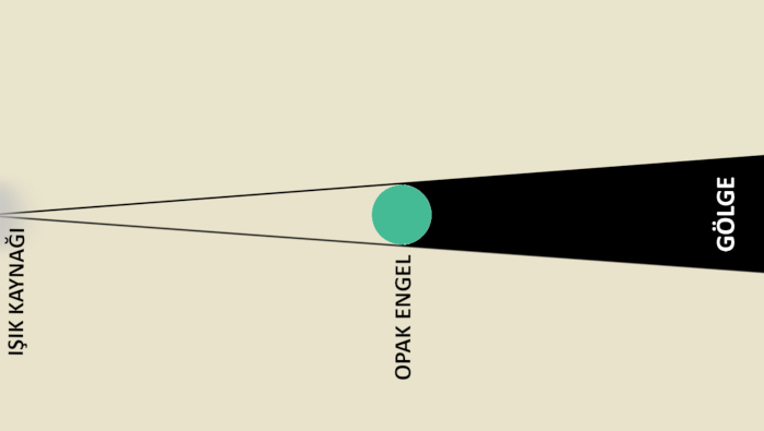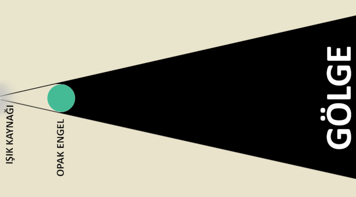 - Işınlar opak bir neseye çarpar ve nesnenin arkasında karanlık bir bölge oluşur.