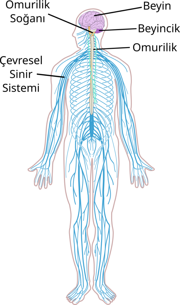 - Omurilik: Beyinle bedenimiz arasında bilgi taşır. Ayrıca bazı ani tepkileri (refleksleri) kontrol eder. Refleksler, beynin onayını beklemeden gerçekleşen ani hareketlerdir.