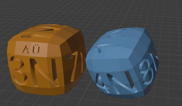 Not: Zardaki poligon sayısı kasıtlı olarak düşük tutulmuştur. Zar bu haliyle atıldığı zaman PLA tipi malzemede kendiliğinden sekebilmekte ve böylece tüm yüzeylerin gelme olasılığı eşitlenmektedir. Zar küreselleştikçe aynı yüzün gelme olasılığı artarken kübikleştikçe istenilen sayıyı getirme olasılığı artmaktadır.