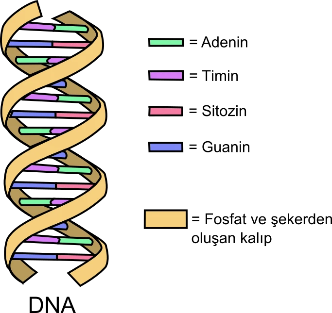 DNA molekülünü oluşturan en temel yapı nükleotitlerdir. Nükleotitler bir araya gelerek uzun bir zincir oluşturur. Bu zincirin belirli görevlerle sınırlandırılmış her bir birimi olan genler DNA üzerinde birbirine eklenmiş olarak saklanır.