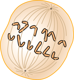 4. Kromozomlar ayrılma için hazır ve hücrenin ortasına diziliyorlar. Böylece bölünme sırasında herhangi bir kaza yaşanma olasılığı azalacak.