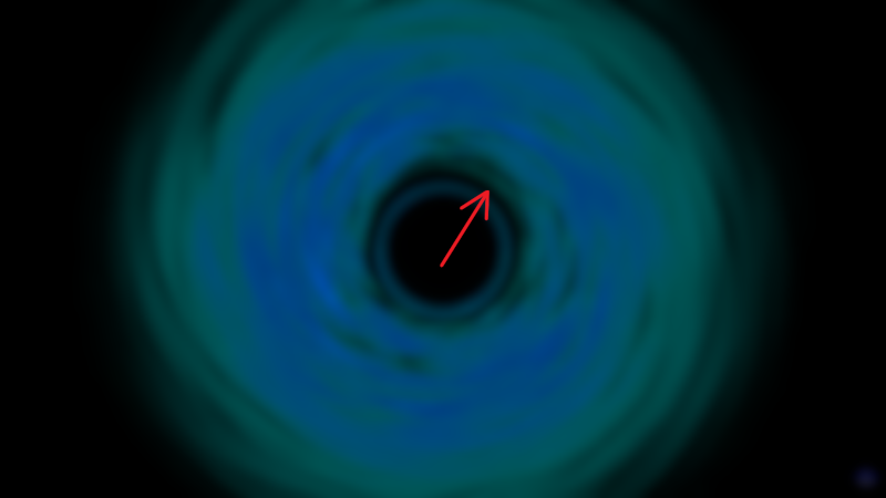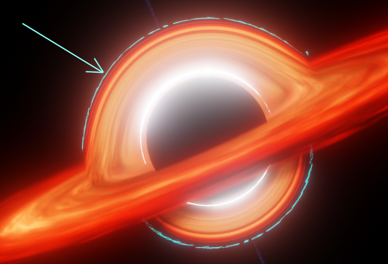 Resmin gösterdiği enerji tablosuna göre kara deliği eğer net biçimde görebilseydik halihazırda üretilen modellerde bulunan “foton halkası” bölümünün kara deliğin olay ufku içinde kalan kısımlarında göremezdik. Kara delik olay ufkundan en yüksek enerjiye sahip olduğu noktaya doğru aniden başlayan enerjinin kesintisiz biçimde ve dalgalanmadan ilerlediği gözlenmektedir.